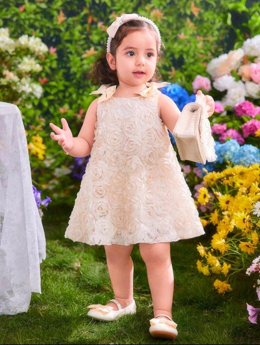 Vestido de fiesta niña 2-3 años color marfil con flores 3D y lazo